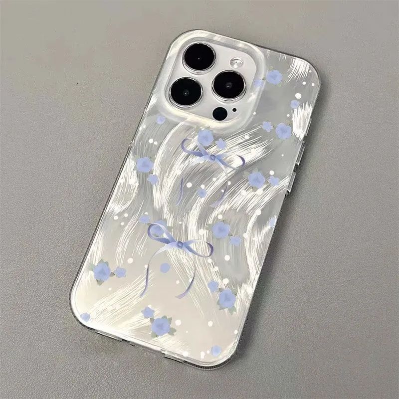 เคสโทรศัพท์ไหมพรมขนนกสีเงินพิมพ์ลายดอกไม้สีม่วงโบว์ เหมาะสำหรับไอโฟนสำหรับเสี่ยวมี่สำหรับซัมซุงสำหรับออปโป้สำหรับวีโว่