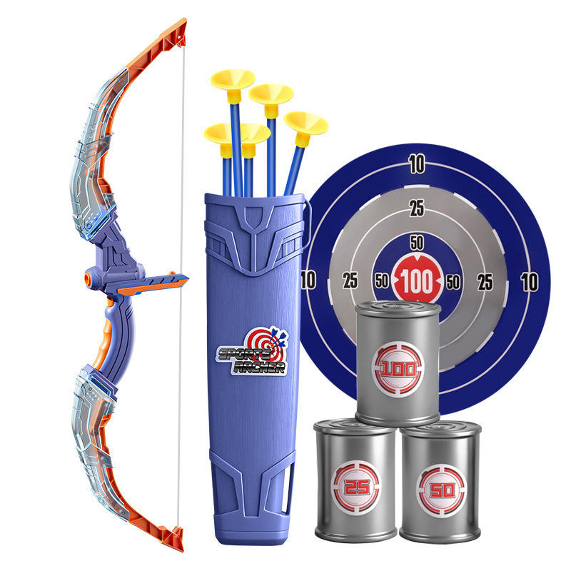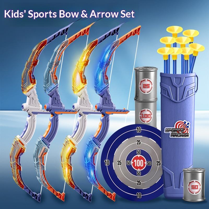 ชุดของเล่นธนูและลูกศรสำหรับเด็ก ชุดของเล่นธนูเรืองแสงพร้อมลูกศร เป้า และกระบอกใส่ลูกศร