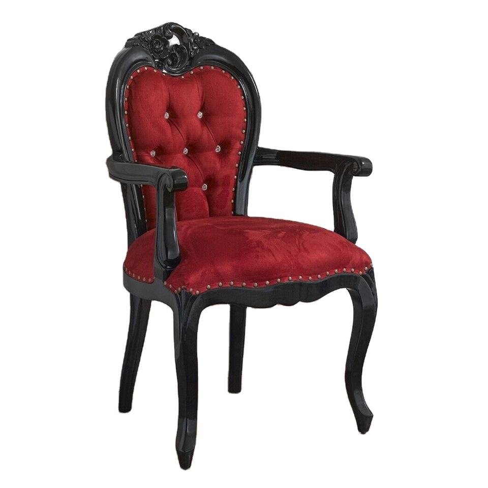 เก้าอี้ทานอาหารไม้ ที่พักแขนสไตล์บาโรกเคลือบแล็กเกอร์สีดำ