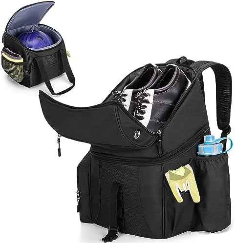 กระเป๋าโบว์ลิ่งแบบสะพายหลัง พร้อมที่ใส่ลูกโบว์ลิ่งไม้ และช่องใส่รองเท้า ใส่รองเท้าได้หนึ่งคู่ ไซส์ US ผู้ชาย 16 กระเป๋าหลายช่อง