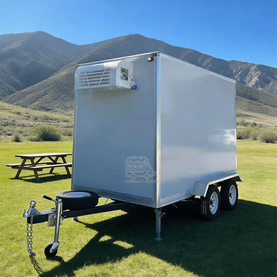ตู้เย็นเทรลเลอร์ทำความเย็นรถกึ่งพ่วงความจุสูงตู้เย็นเย็นรถพ่วงเย็นสำหรับมินิอาหารรถพ่วง