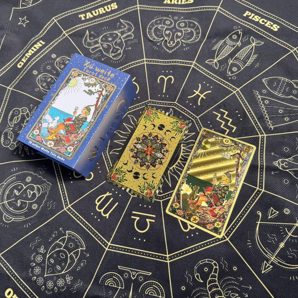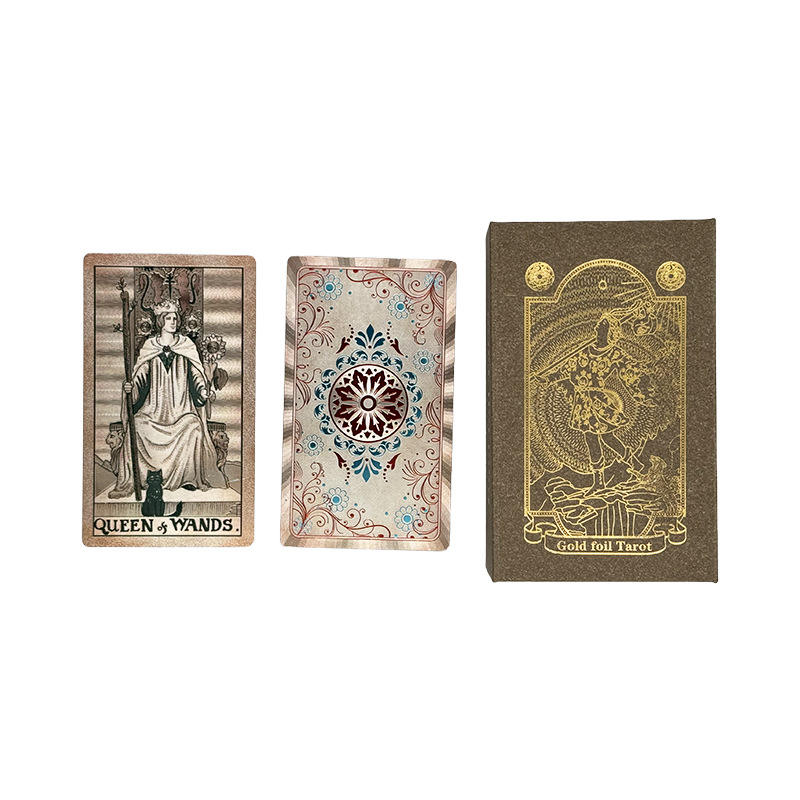 ไพ่ทาโรต์ฟอยล์สีทอง78ใบบรรจุกล่องอุปกรณ์ศิลปะโฮโลแกรมการทำนายโชคชะตา