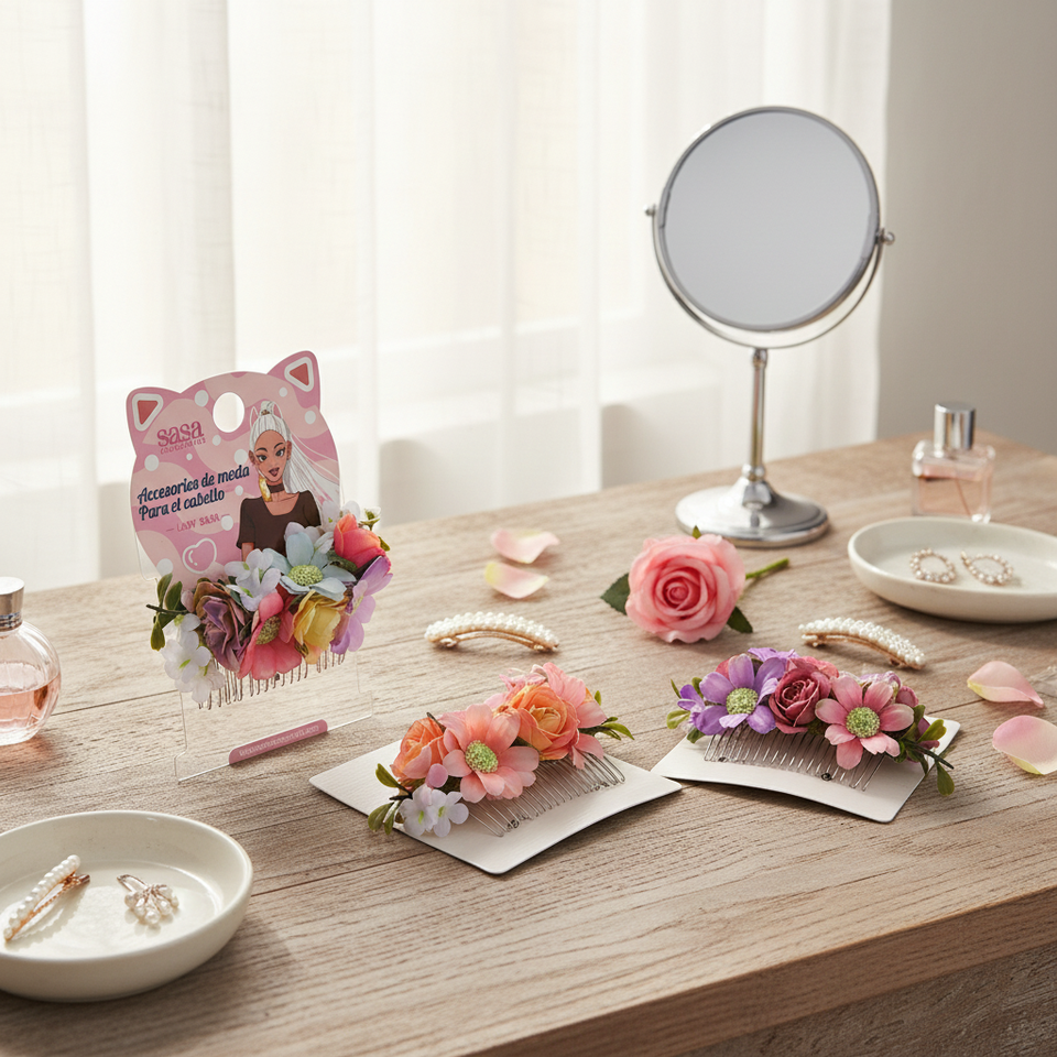 หวีผมบรรจุกล่องพร้อมหวีเสียบหลากสี4อัน