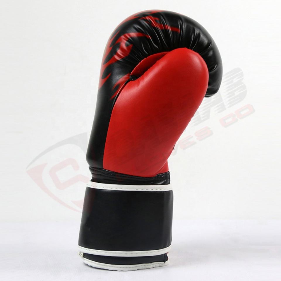 ถุงมือฝึกชกมวยพิมพ์ลายด้วยการระเหิดสีแดงดำมีคุณภาพถุงมือหนัง PU นวมศิลปะการต่อสู้