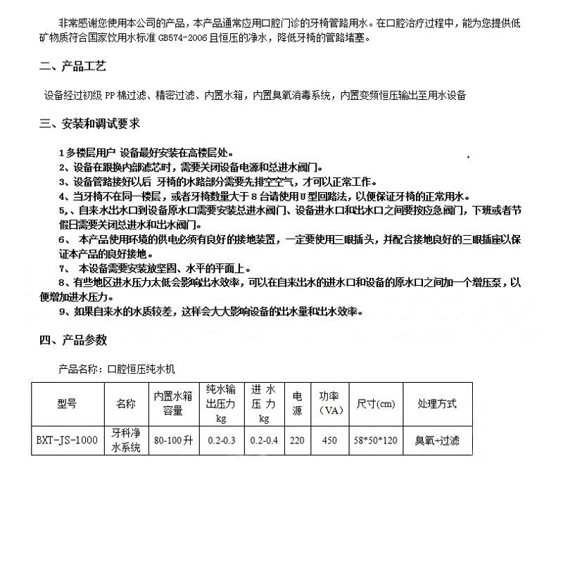 ระบบกรองน้ำบริสุทธิ์สำหรับทันตกรรม Boxintong BXT-JS-1000 ใช้พลังงานไฟฟ้า ผลิตจากวัสดุเหล็กและพลาสติก