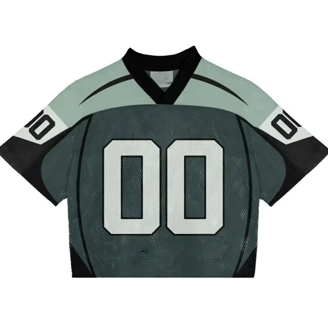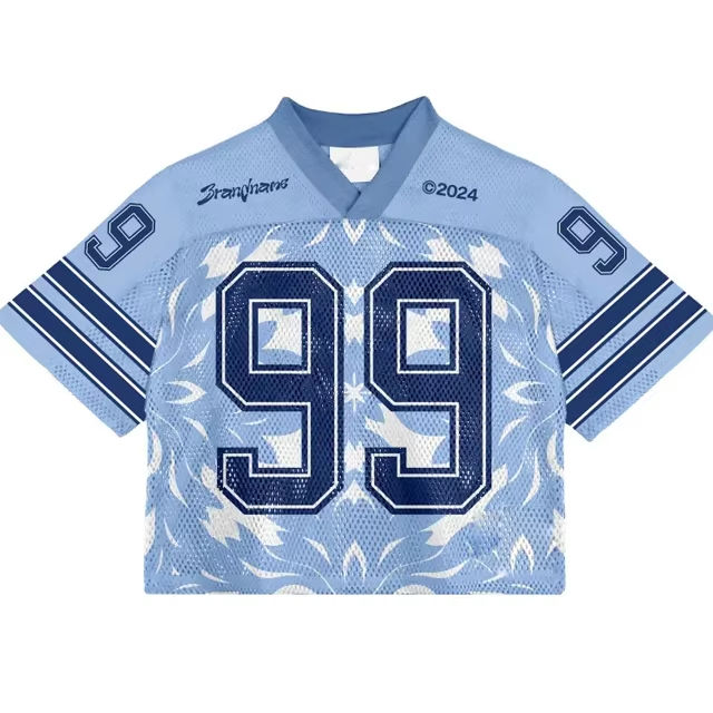 Boxy เสื้อยืดครอปแบบพอดีตัวเสื้อฟุตบอลแนวเรโทรเสื้อยืดโอเวอร์ไซส์แห้งเร็วพิมพ์ลายเสื้อผ้าครอปตาข่าย