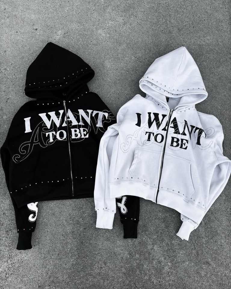 Product name:Boxy Fit Full Screen Printed & Rhinestones Tracksuits