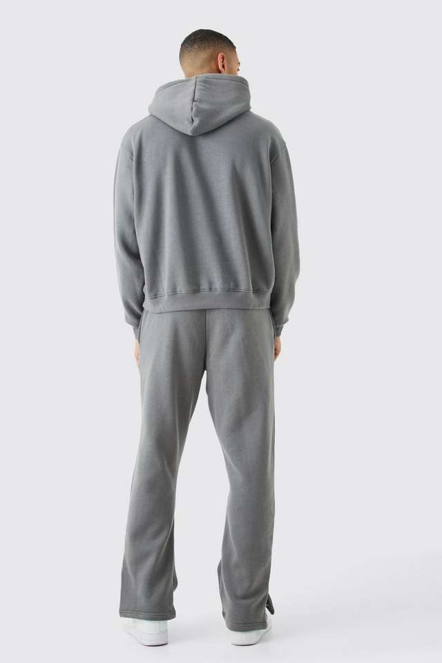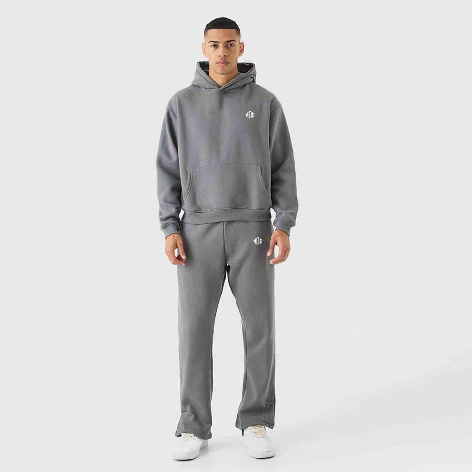 Boxy เสื้อฮู้ดแบบสวมหัวเปิดไหล่, ชุดวอร์มใส่วิ่งจ๊อกกิ้งสำหรับผู้ชายโอเวอร์ไซส์ผ่าริม