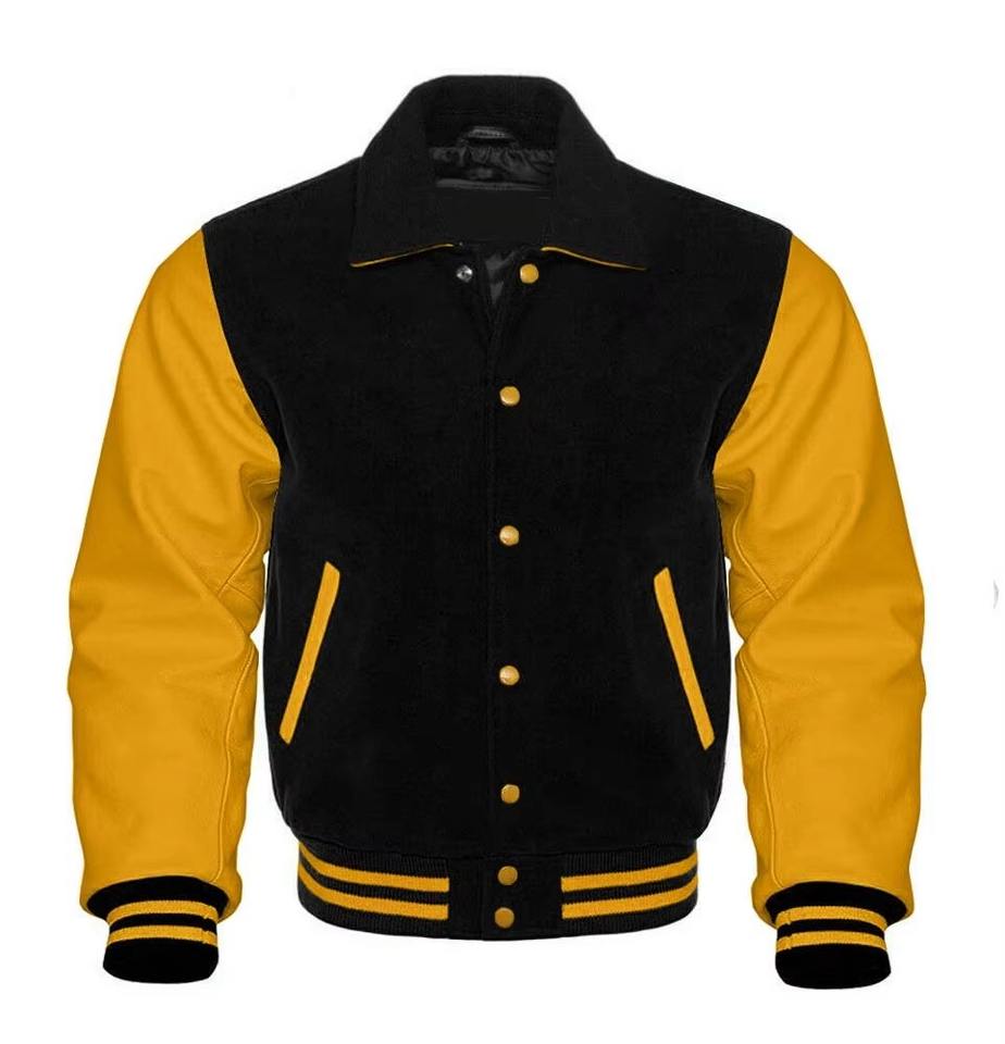 แจ็คเก็ตวาร์ซิตี้ทรงบ็อกซี่ ผ้าขนแกะผสม แต่งสีตัดกัน กระเป๋าแบบคาร์โก้ ทรงหลวม สไตล์เดนิม แต่งรอยขาด สำหรับผู้ชาย