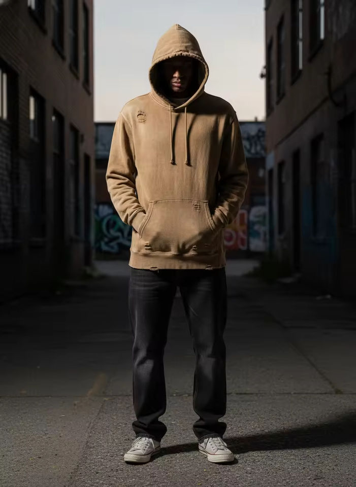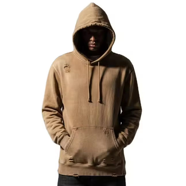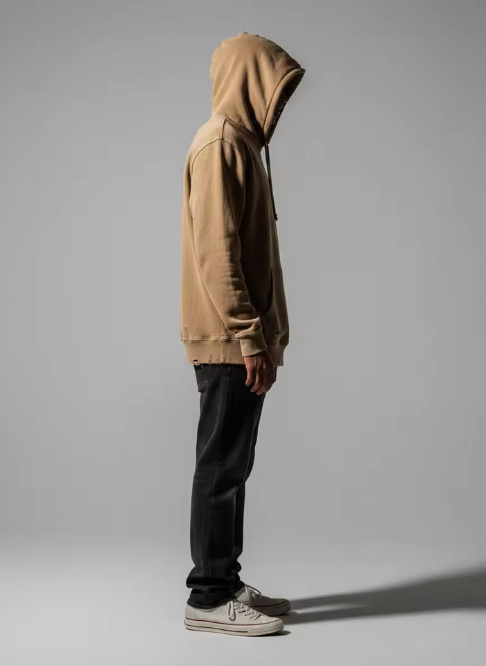 เสื้อฮู้ดดี้ทรงบ็อกซี่สำหรับผู้ชาย ผ้าฟลีซหนา 350 กรัม ทรงเข้ารูป แขนสั้นและกว้าง บุซับในป้องกันรอยยับ ผลิตจากผ้าฝ้ายผสม
