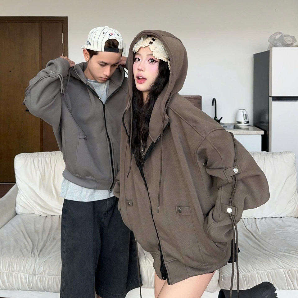 เสื้อสเวตเชิ้ตแขนยาวผ้าฝ้ายแบบมีฮู้ดใส่ได้ทั้งชายและหญิง