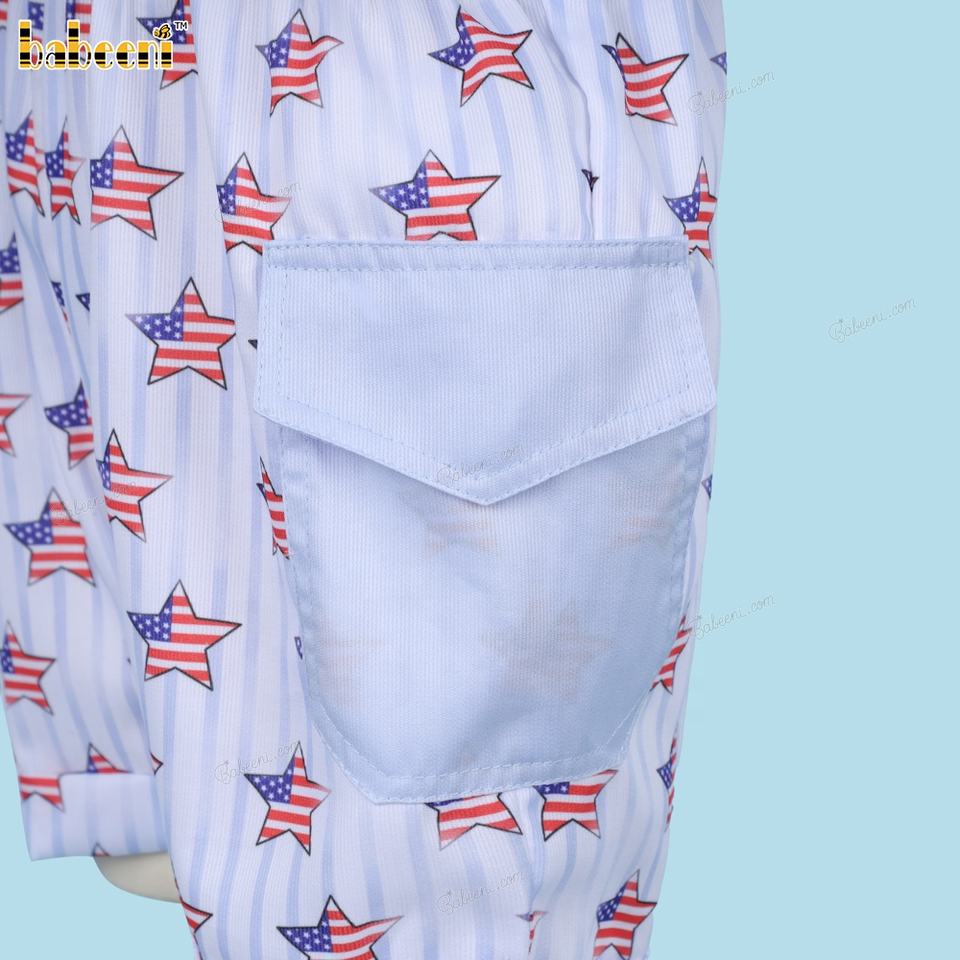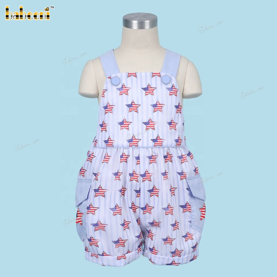 ชุดเสื้อผ้าเด็กผู้ชายถักนิตติ้ง 100% ผ้าฝ้าย แขนกุด ป้องกันไฟไหม้ สีฟ้าลายธงชาติอเมริกา รูปดาว รับผลิตแบบ OEM ODM ปรับแต่งได้ตามต้องการ