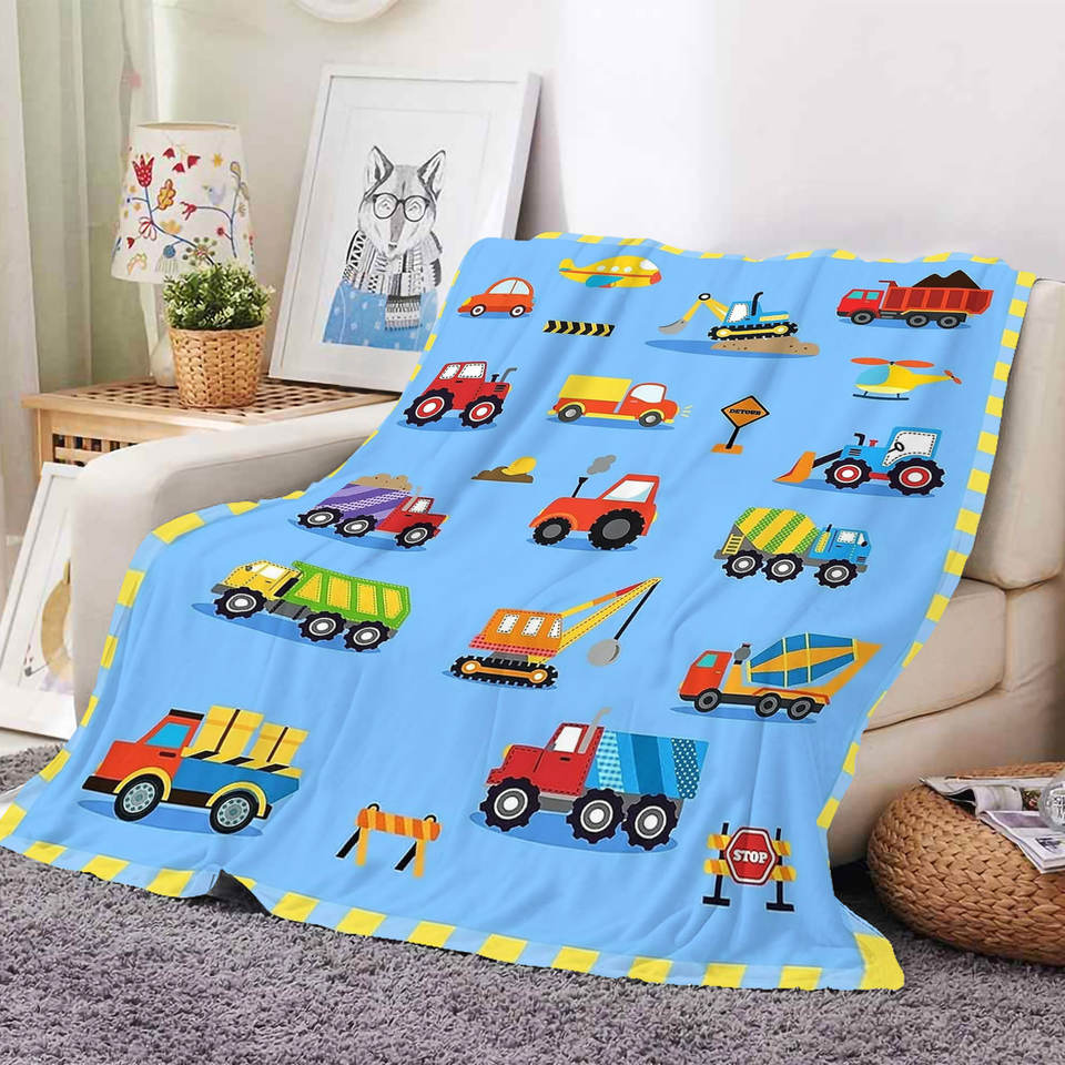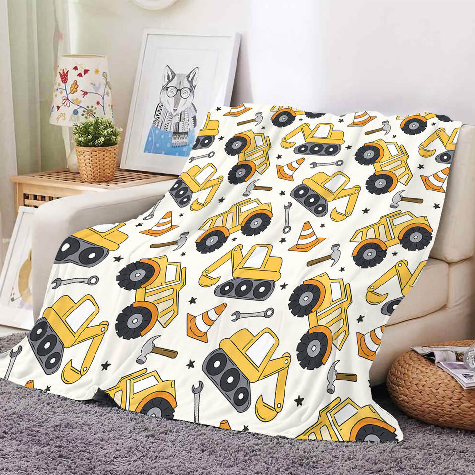 Boy's Gift Construction Excavator Truck Car Print Plush Throw Blanket Bedroom Decor Customized Size Design Soft Warm Blankets