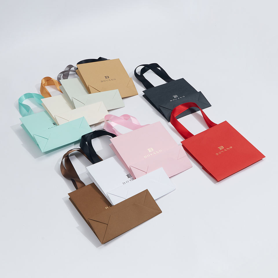 ถุงกระดาษช้อปปิ้งขนาดเล็กแบบกำหนดเองของ Boyang เป็นมิตรกับสิ่งแวดล้อม รีไซเคิลได้ พร้อมโลโก้