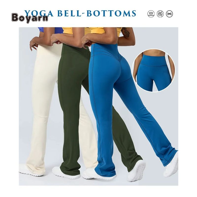 Boyarn กางเกงโยคะเอวสูงขากว้างมีเปลวไฟมีคุณสมบัติในการยกบั้นท้ายดีไซน์ทรงแข็งถุงน่องเล่นกีฬากลางแจ้งสำหรับเต้นพิลาทีส