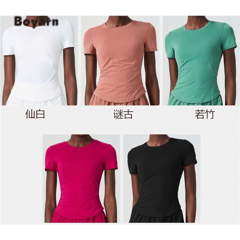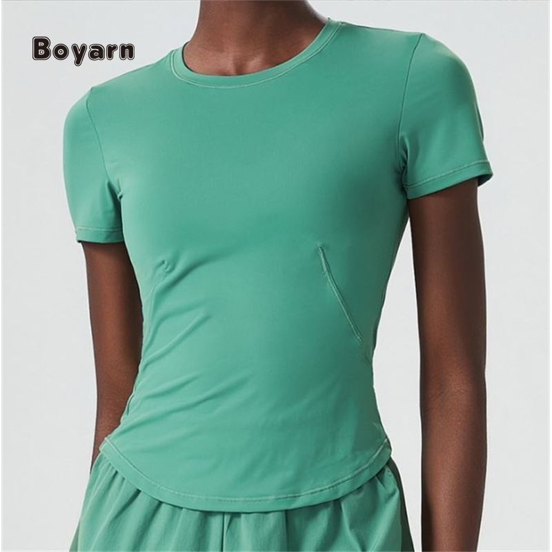 Boyarn เสื้อกีฬาสำหรับผู้หญิงเสื้อยืดฟิตเนสแขนสั้นสำหรับออกกำลังกายโลโก้ออกแบบได้ตามต้องการ
