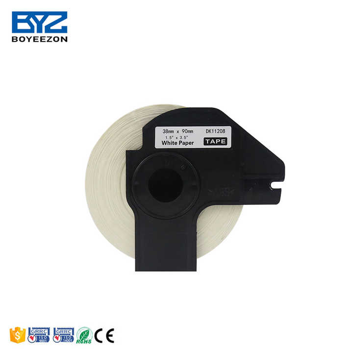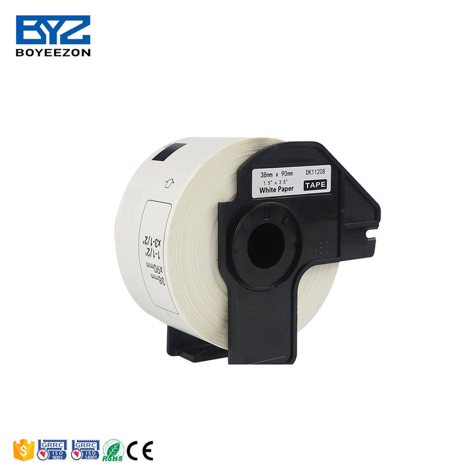 Boyeezon แผ่นม้วน DK-11208 DK11208ขนาด38มม. สีดำบนขาวสำหรับเครื่องพิมพ์ QL-650TD QL-500เครื่องพิมพ์