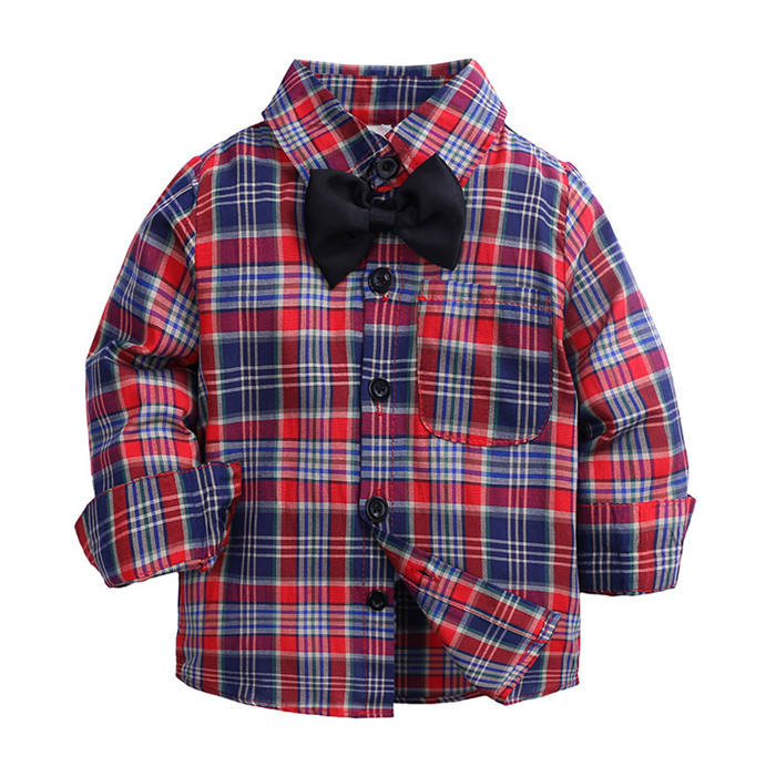 เสื้อเชิ้ตลายสก็อตผ้าฝ้ายสำหรับเด็กชาย แขนยาว เหมาะสำหรับนักเรียนประถม