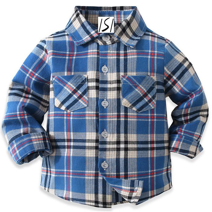 เสื้อเชิ้ตผ้าสักหลาดสำหรับเด็กผู้ชายเสื้อเชิ๊ตผ้าฝ้ายย้อมสีแบบตะวันตกสำหรับ100%