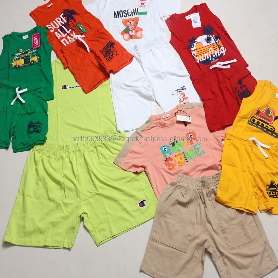 ชุดเดรสผ้าฝ้ายสำหรับเด็กผู้ชาย เด็กผู้หญิง เสื้อผ้าเด็กฤดูร้อน ชุดลำลองสำหรับกิจกรรมกลางแจ้ง สินค้าสต็อกจำนวนมาก ผู้จำหน่ายเสื้อผ้าแบบคละสไตล์ ขายส่งเป็นมัด