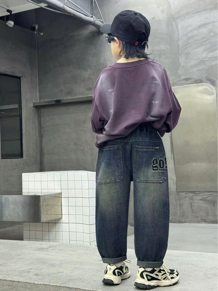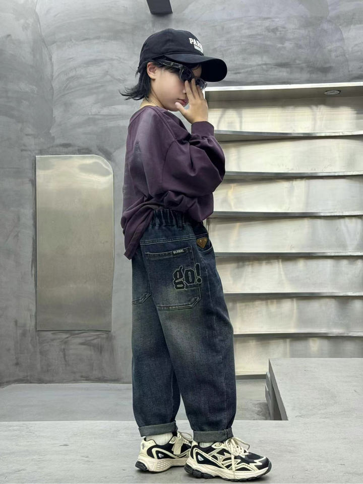 กางเกงยีนส์เด็กชายทรงหลวมกางเกงขาตรงพร้อมสายรัดเอวยางยืดผ้าเดนิมไม่ยืดสำหรับสวมใส่ในชีวิตประจำวันและเป็นทางการ-วัยรุ่นทุกฤดูกาล