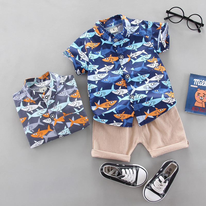 Boys Korean Summer New Style Children's Clothing Baby Children's Suit Shirt Short-sleeved Two-piece Suit