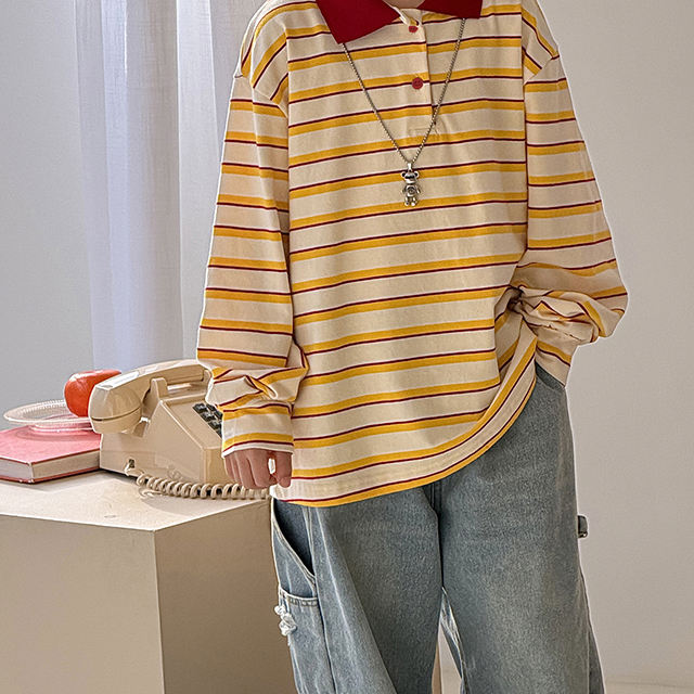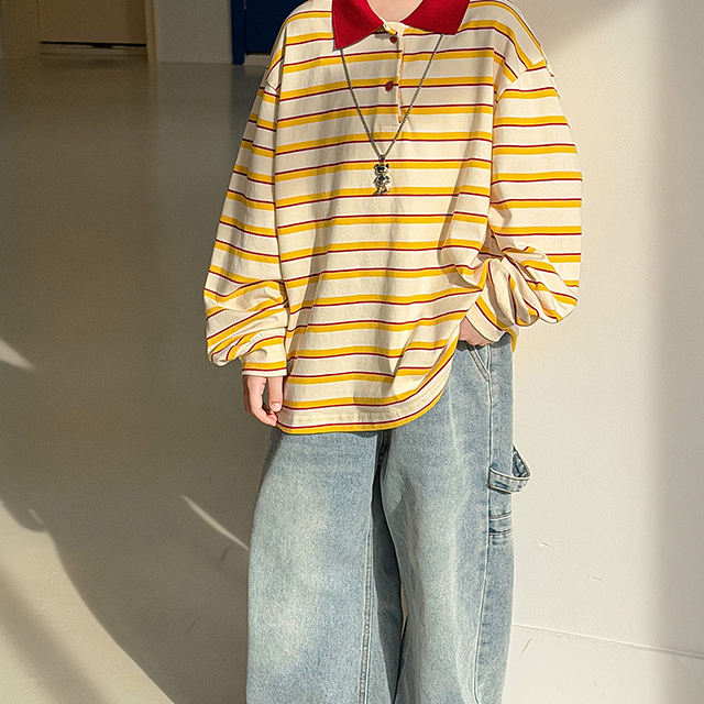 เสื้อโปโลเด็กผู้ชาย สไตล์เกาหลี ฤดูใบไม้ผลิ 2026 ใหม่ ปกเสื้อลายทาง ทรงหลวม สบายๆ เสื้อเด็ก