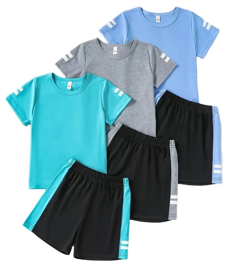 ชุดเสื้อยืดแขนสั้นสำหรับเด็กผู้ชายกางเกงขาสั้น2ชิ้นลายสก๊อตผ้าอ๊อกซ์ฟอร์ดนุ่มสบายสีทึบแพ็ครวมเข้ากับทุกชุดกลางแจ้ง