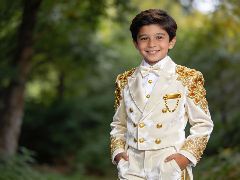 ชุดทักซิโด้เด็กชายสีเงินเทาผ้ากำมะหยี่ปักลาย | ชุดสูทสำหรับเด็กสำหรับงานแต่งงานและงานเลี้ยง