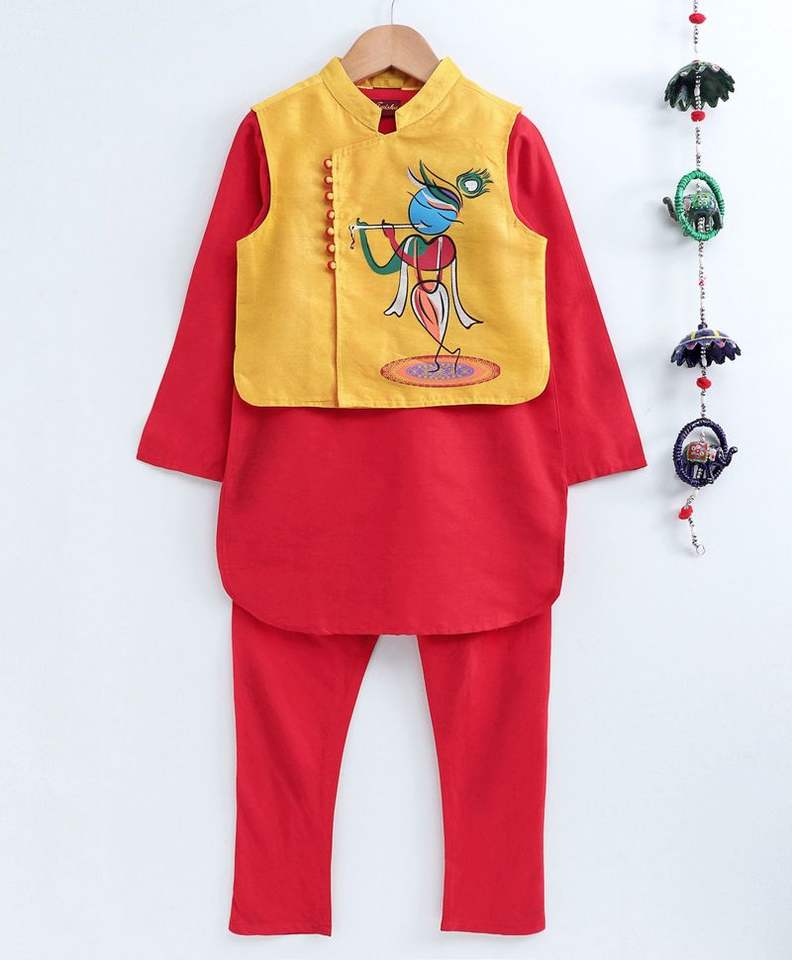 ชุดคุรตะพิษามาสำหรับเด็กผู้ชายพร้อมแจ็คเก็ตพิมพ์ลายดอกไม้ ชุดพื้นเมืองสำหรับเด็ก (6 เดือน - 8 ปี)