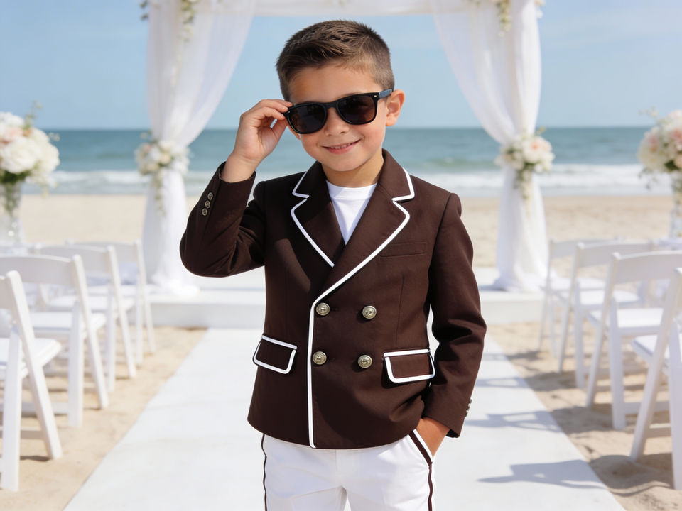 ชุดสูทเบลเซอร์สีเหลืองแบบกระดุมสองแถวสำหรับเด็กผู้ชายสำหรับงานแต่งงานริมชายหาด | ชุดสูทเด็กสำหรับงานพิธีการพร้อมแถบสีขาว