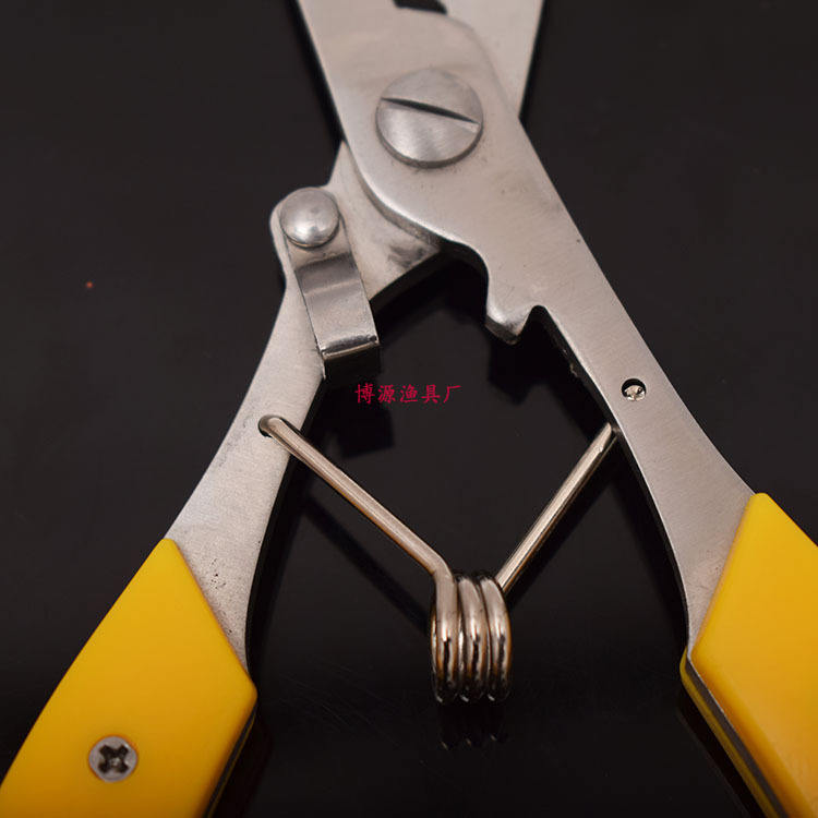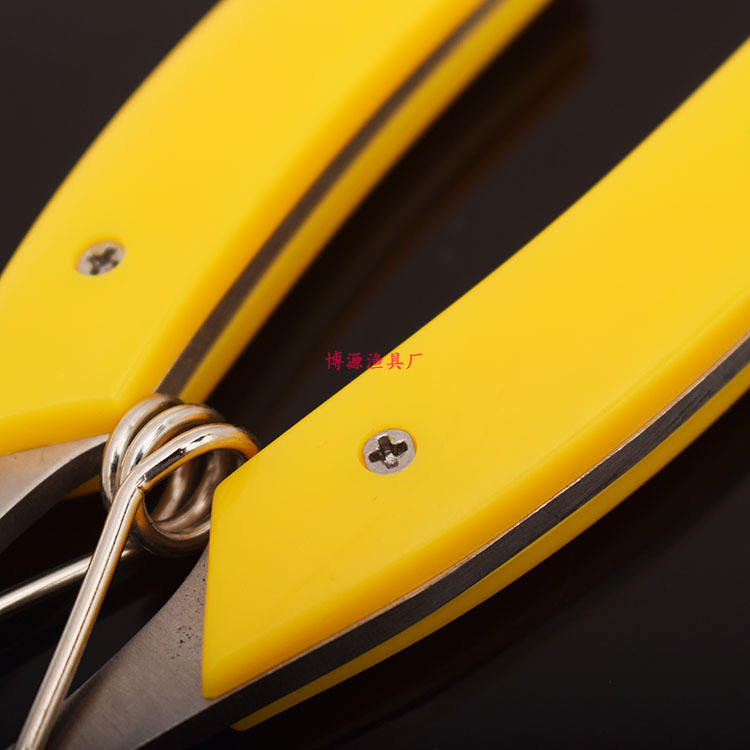 โรงงานอุปกรณ์ตกปลา Boyuan คีมตัดสายเบ็ดแบบยาว ตัวถอดตะขอโลหะ สำหรับอุปกรณ์ตกปลา ด้ามจับสีเหลือง