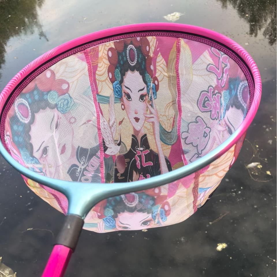 ตาข่ายดักปลา Boyuan ขนาดเส้นผ่านศูนย์กลาง 35 ซม. ทำจากอลูมิเนียมอัลลอยด์ แข็งแรงทนทาน พร้อมตาข่ายลายสีน้ำเงินสำหรับการตกปลา
