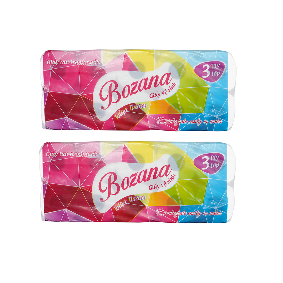 Bozana Bathroom Roll 3 Ply, 10 Roll Produced in Vietnam (Soft Comfortable.)