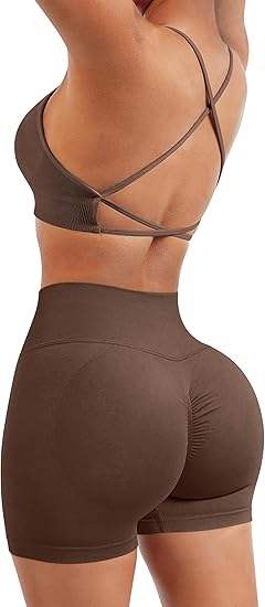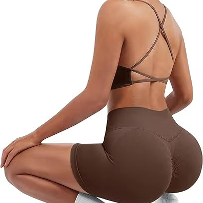 ชุดบราและกางเกงขาสั้นสำหรับผู้หญิงชุดเล่นกีฬารัดกล้ามเนื้อไร้รอยต่อระบายอากาศได้โลโก้ได้สี่ทิศทาง
