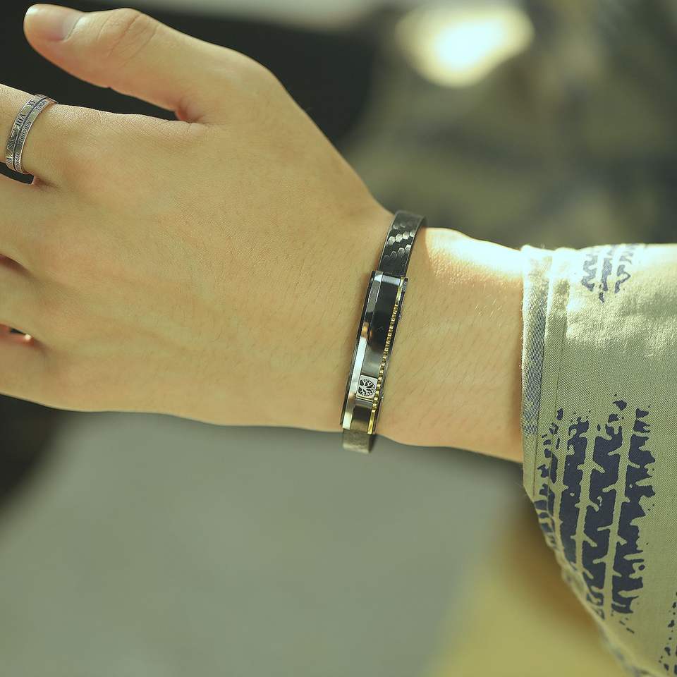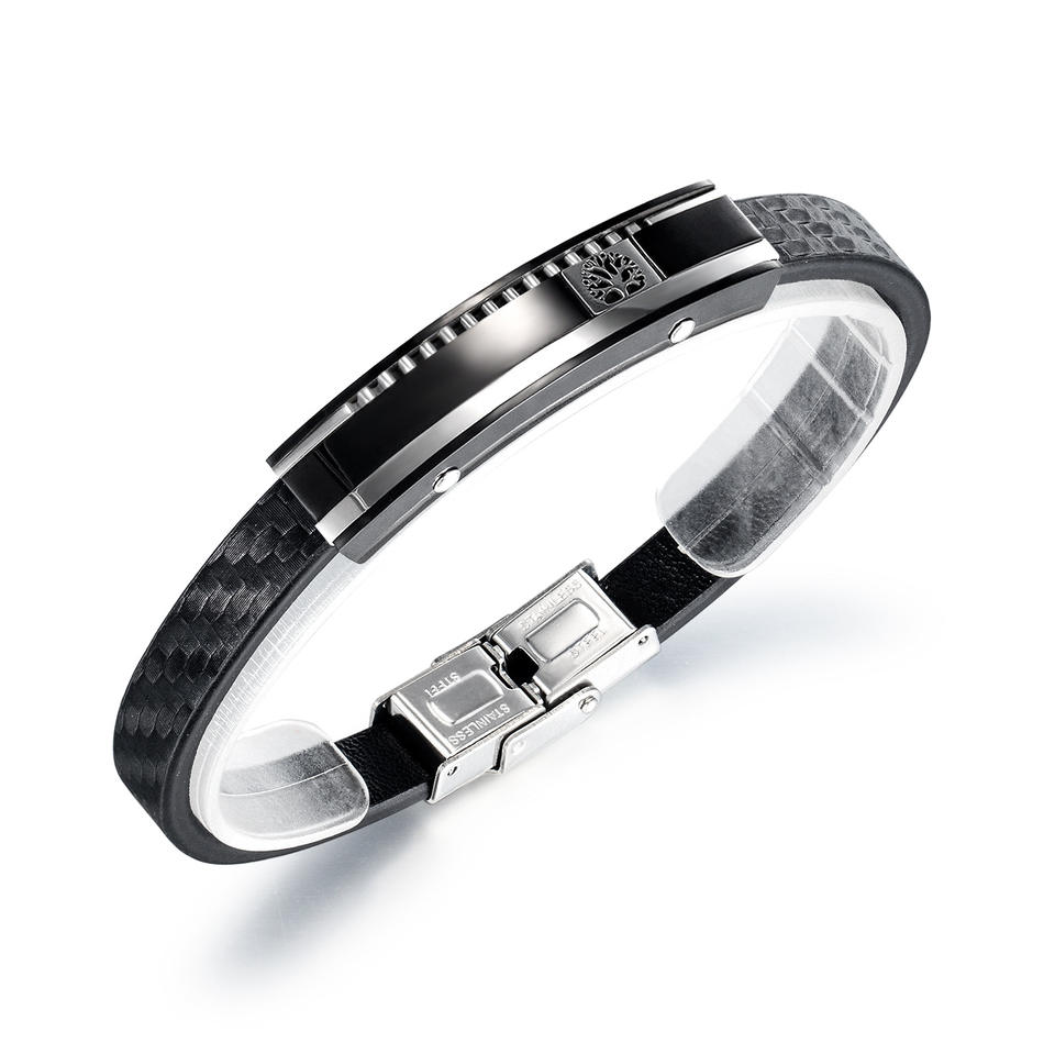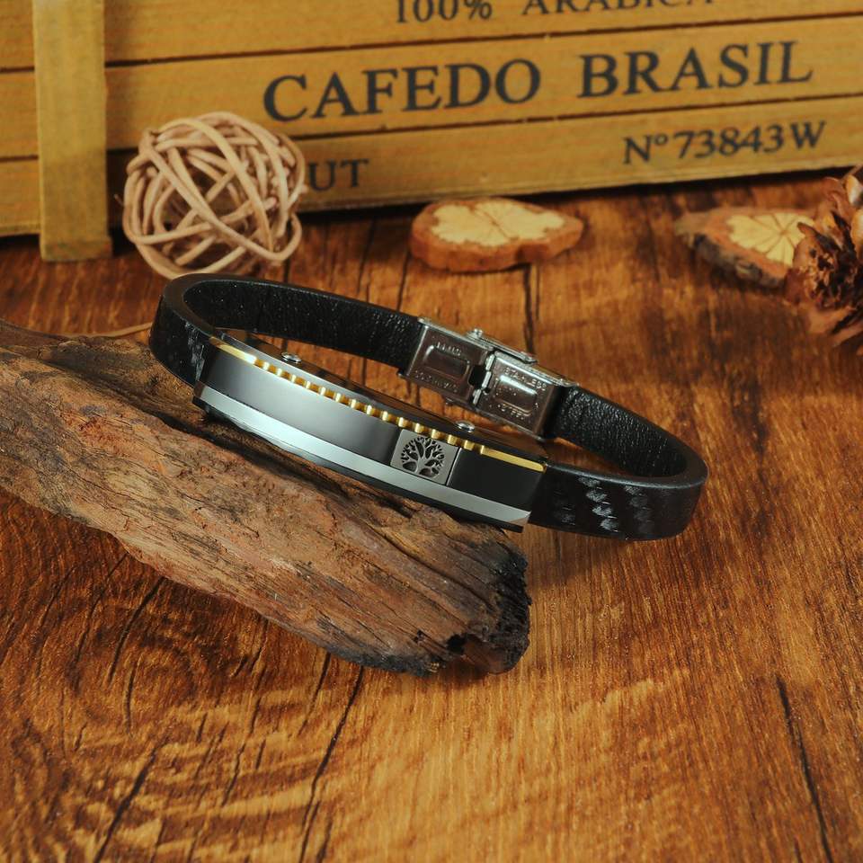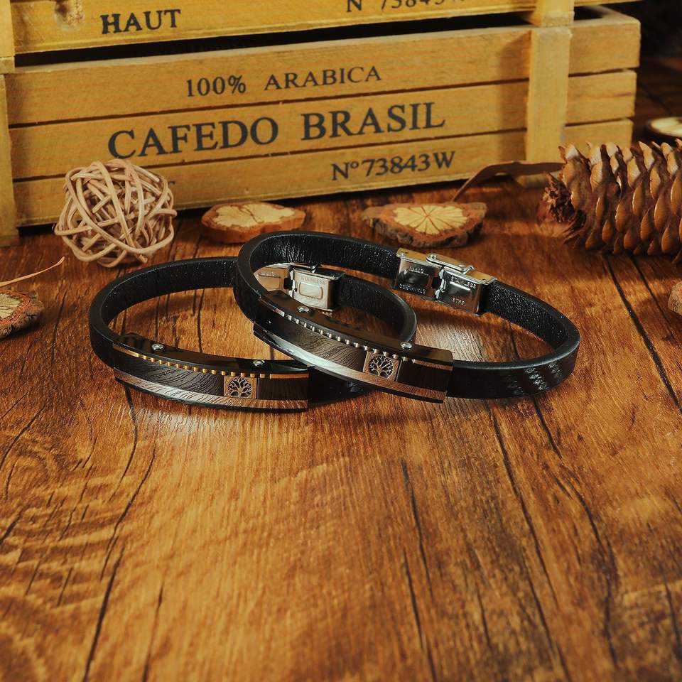 สร้อยข้อมือสแตนเลส สร้อยข้อมือผู้ชาย สายหนังไทเทเนียม สไตล์เรโทร พังก์ ลายต้นไม้แห่งชีวิต