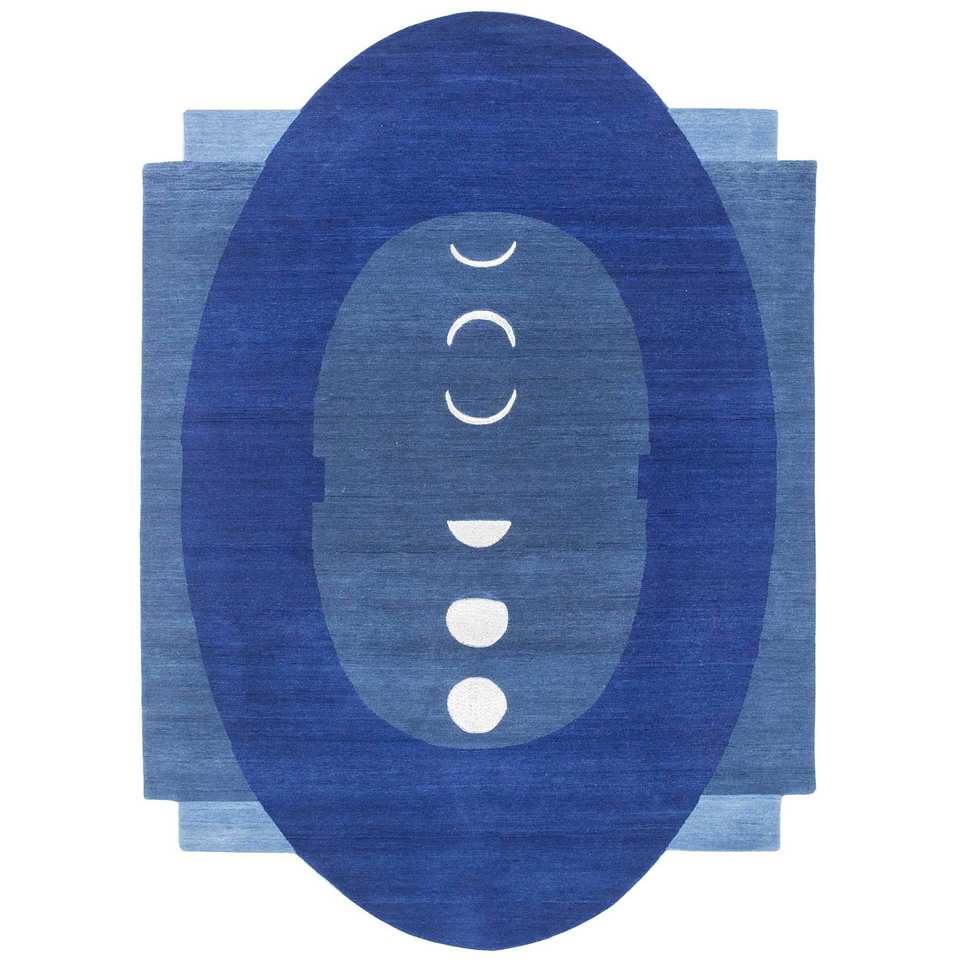 พรมขนสัตว์ถักมือสีน้ำเงิน Brahmaand ลายแบบนามธรรม สำหรับห้องนั่งเล่นและทางเดิน รูปทรงสี่เหลี่ยมผืนผ้า รุ่นใหม่ SPR-7157(Em)