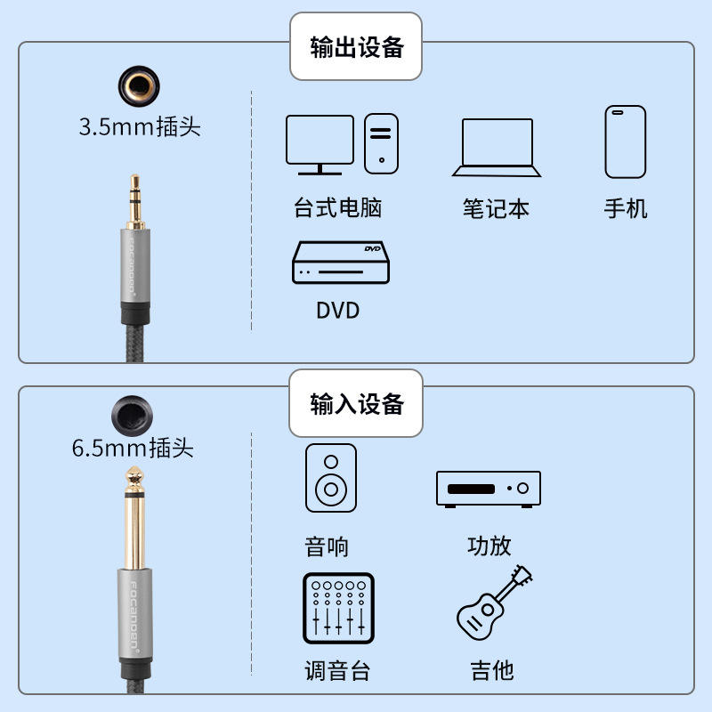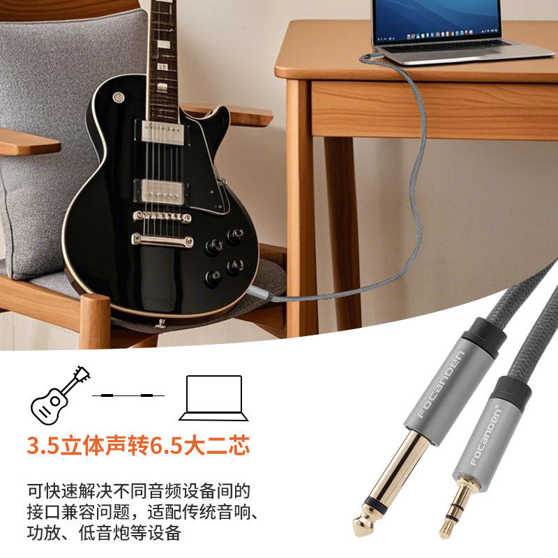 สายสัญญาณเสียงแบบถัก 6.5 มม. ถึง 3.5 มม. ชายหญิง สำหรับกีตาร์ คอมพิวเตอร์ โทรศัพท์ แอมพลิฟายเออร์ ลำโพง มิกเซอร์