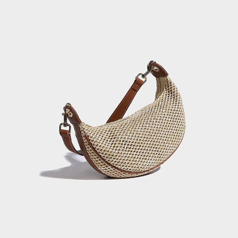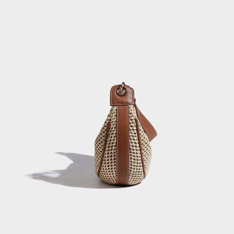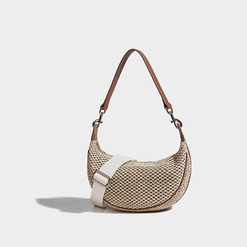 กระเป๋าคาดไหล่แบบถักลายเสี้ยวกระเป๋าสะพายไหล่แนวย้อนยุคมีบล็อกสีมีสายคล้องไหล่กระเป๋าแฟชั่นสำหรับผู้หญิง