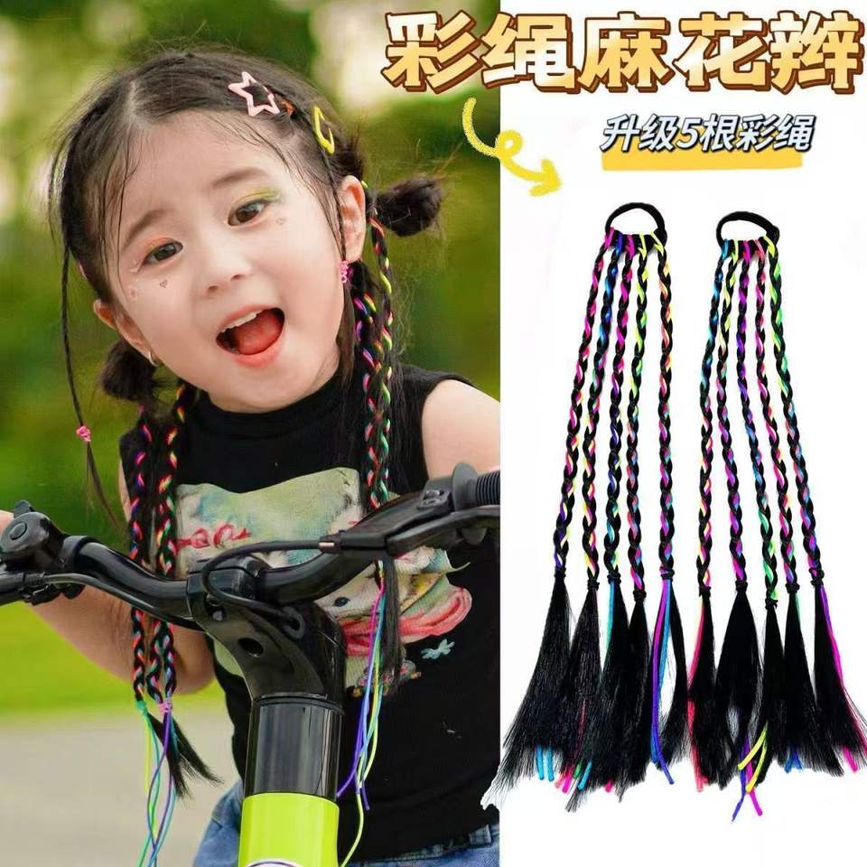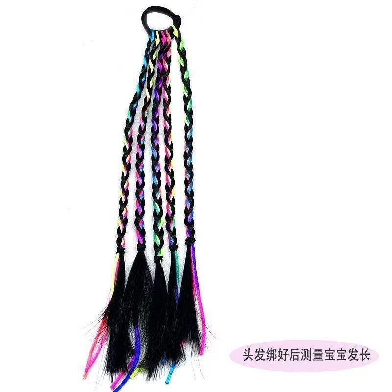 ผมต่อแบบถักเปียสำหรับเด็ก 32 ซม. 42 ซม. ทนความร้อนสูง ย้อมสีสันสดใส ทรงหางม้า สไตล์ฮิปฮอป เต้นสตรีทแดนซ์