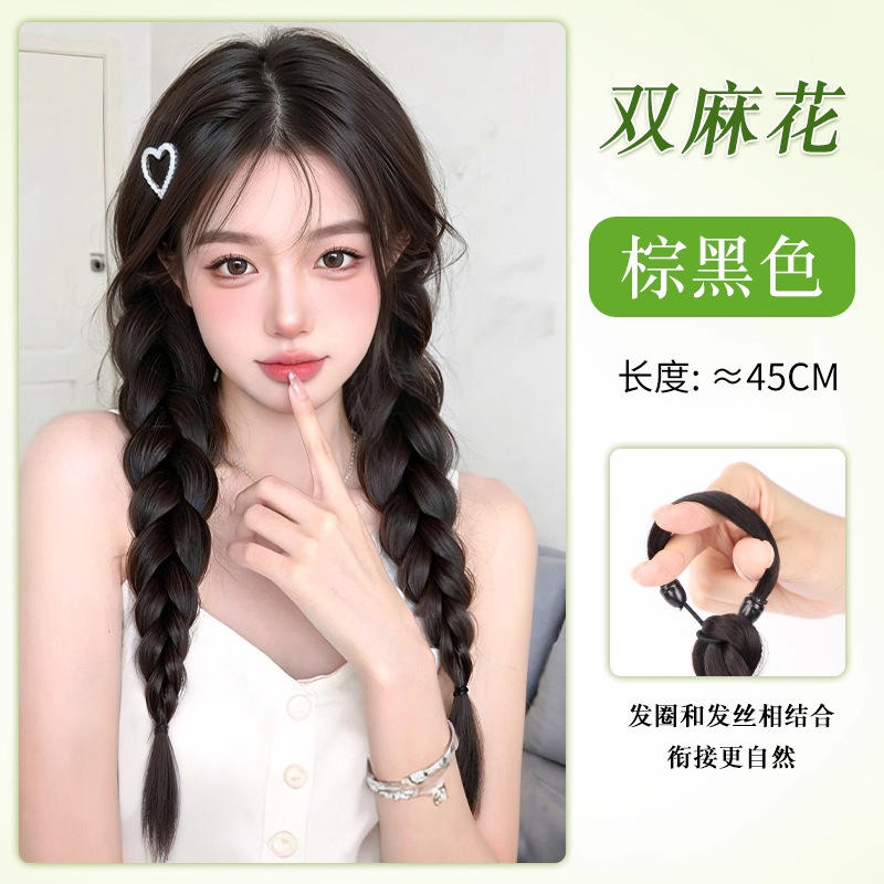 วิกผมถักเปียหางม้าคู่ ทำจากเส้นใยทนความร้อนสูง ทำด้วยมือ สำหรับผู้หญิง สไตล์หวานเท่