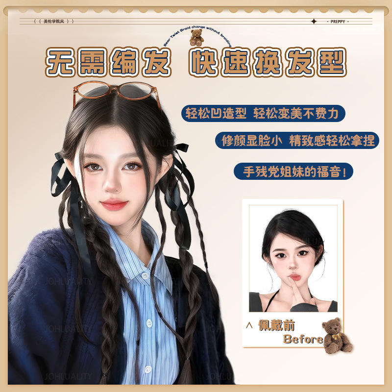 วิกผมหางม้าถักเปีย ลิตเติ้ลแบร์ ทวิสต์เบรดส์ เส้นผมทนความร้อนสูง แบบผูกผมด้วยมือ เหมาะสำหรับทุกรูปหน้า