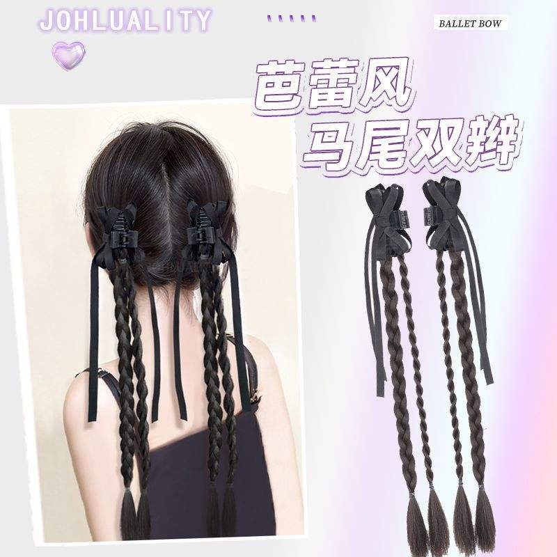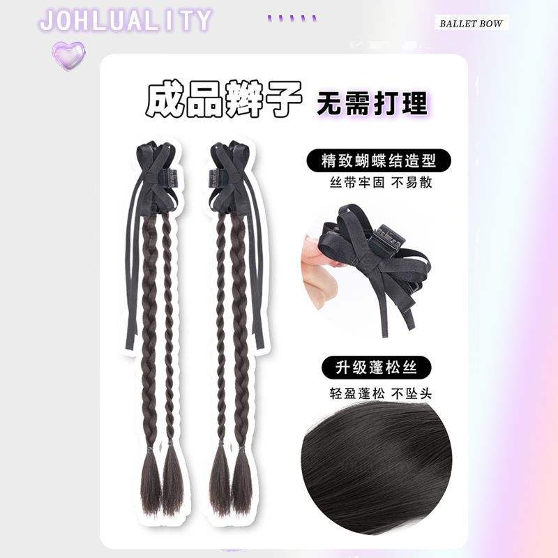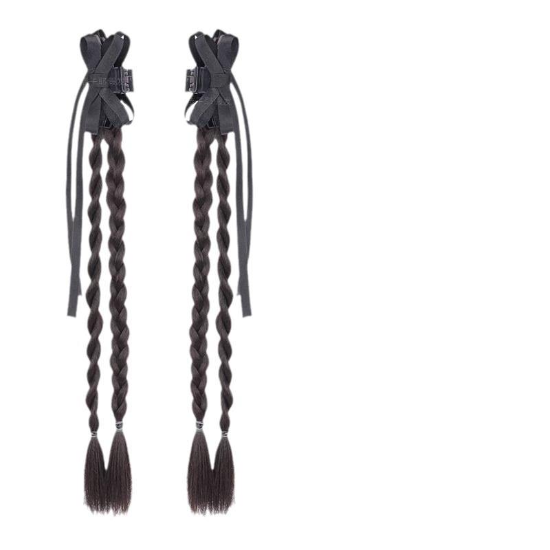 วิกผมถักเปียแบบหนีบ หางม้าเปียคู่ หางม้าต่ำ วิกผมถักเปียสไตล์จีนแบบใหม่