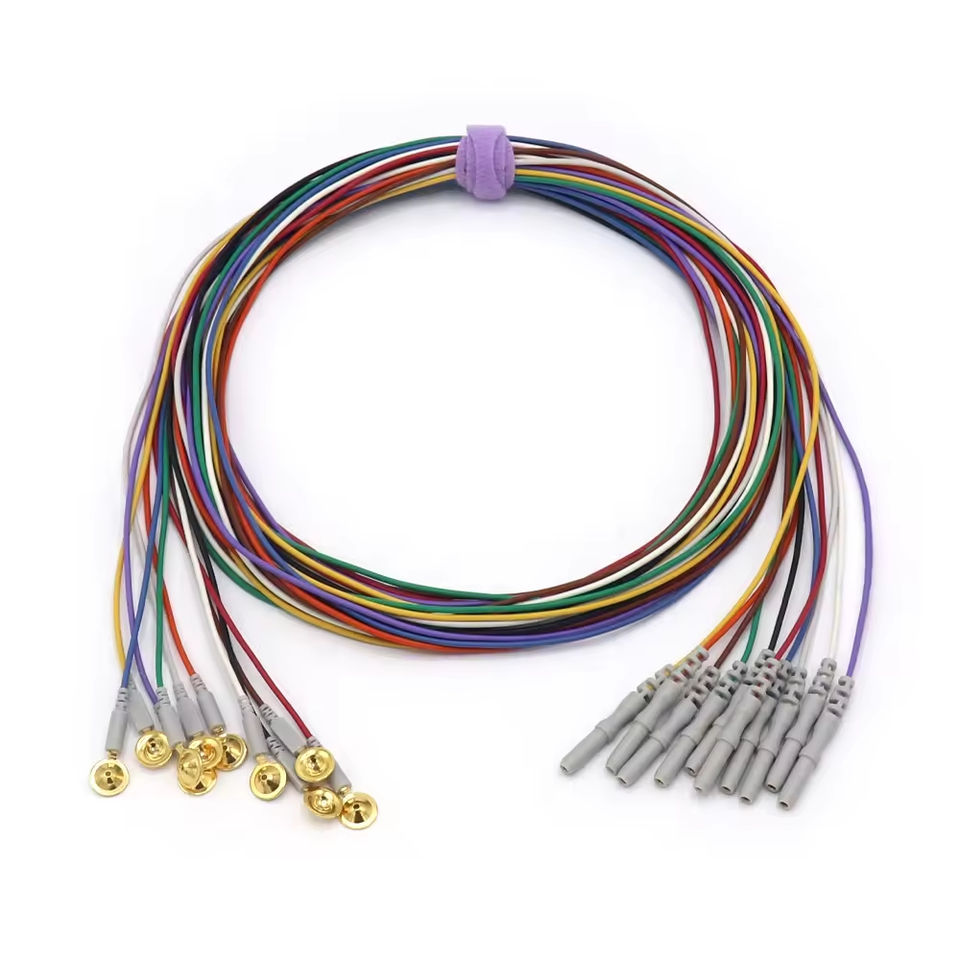 สายไฟอิเล็กโทรดสมอง EEG สายไฟนำไฟฟ้าสมอง สายไฟอิเล็กโทรดแบบติดดิสก์เคลือบทอง DIN1.5 มม.