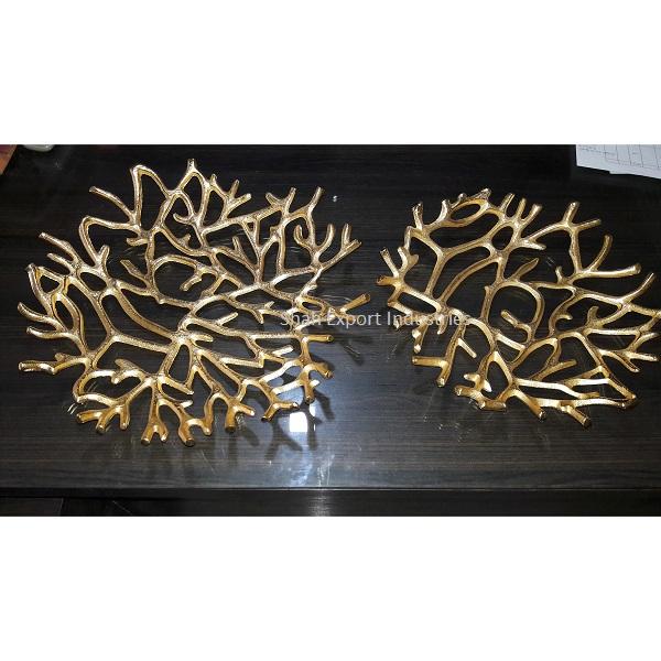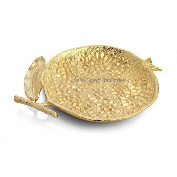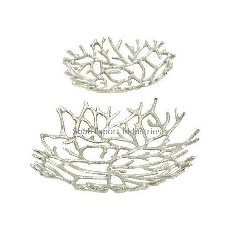 ชามเสิร์ฟผลไม้ทำจากอลูมิเนียมเคลือบสีเงินชามใส่ของบนโต๊ะดีไซน์กิ่งไม้