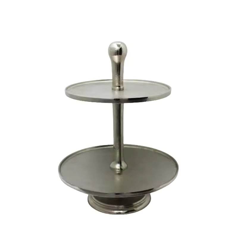 ที่วางเค้กโลหะเคลือบสีดำ2ชั้นเป็นมิตรกับสิ่งแวดล้อมเหมาะสำหรับวางบนโต๊ะในงานแต่งงานในโรงแรมดีไซน์กิ่งไม้