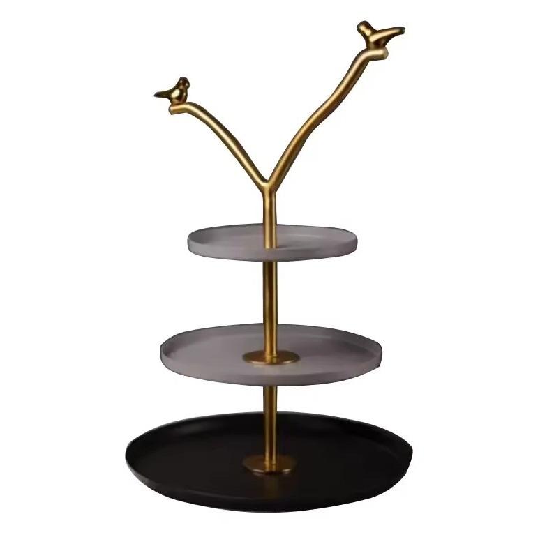 แท่นวางเค้กทรงกลมเคลือบสีดำโลหะดีไซน์กิ่งก้าน3ชั้นสำหรับใช้วางบนโต๊ะในงานแต่งงานและโรงแรม