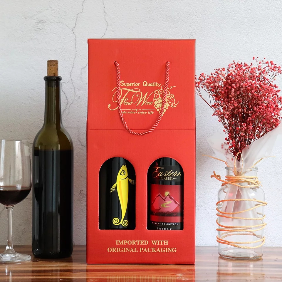 Brand Custom Logo Eco-Friendly Biodegradable Drinks Beverage Corrugated Paper Packaging Box Vino Wine Handheld Gift Packing Box