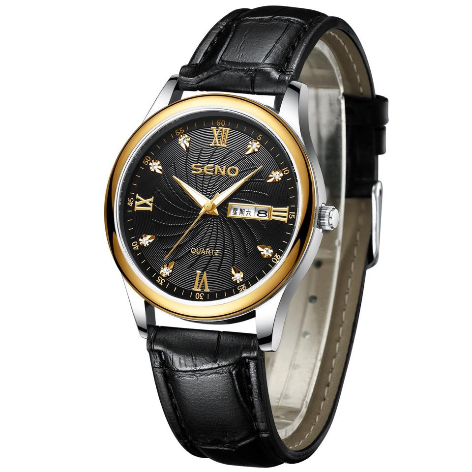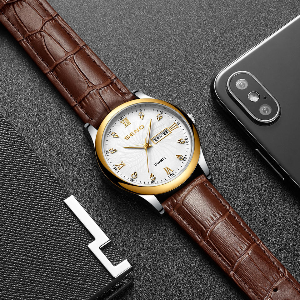 Brand Custom Men's Watch Fully Automatic Luminous Waterproof Dual Calendar Korean Style Casual Leather Strap Quartz Wristwatch
