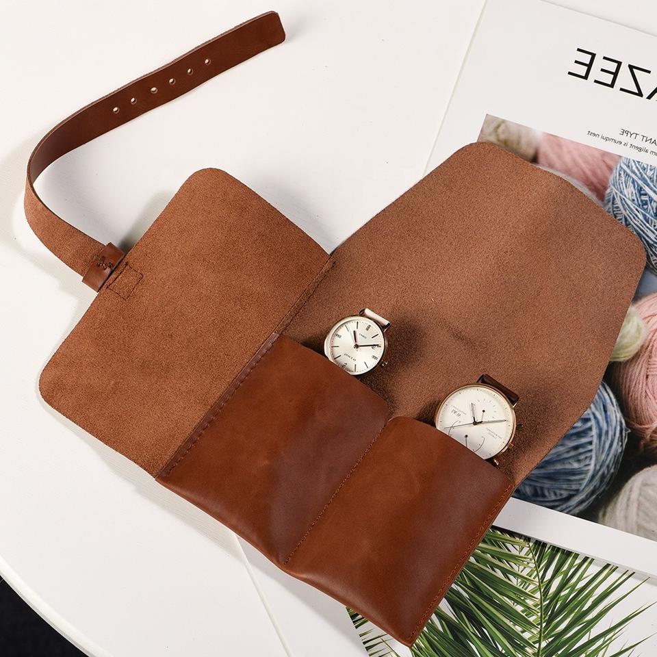 นาฬิกาแบบพกพาพับได้2กระเป๋าหนังวินเทจหรูหราแบรนด์ดีไซเนอร์แบบพกพาใส่นาฬิกาแบบม้วนทนทานใช้ได้ทั้งชายและหญิงปรับแต่งได้